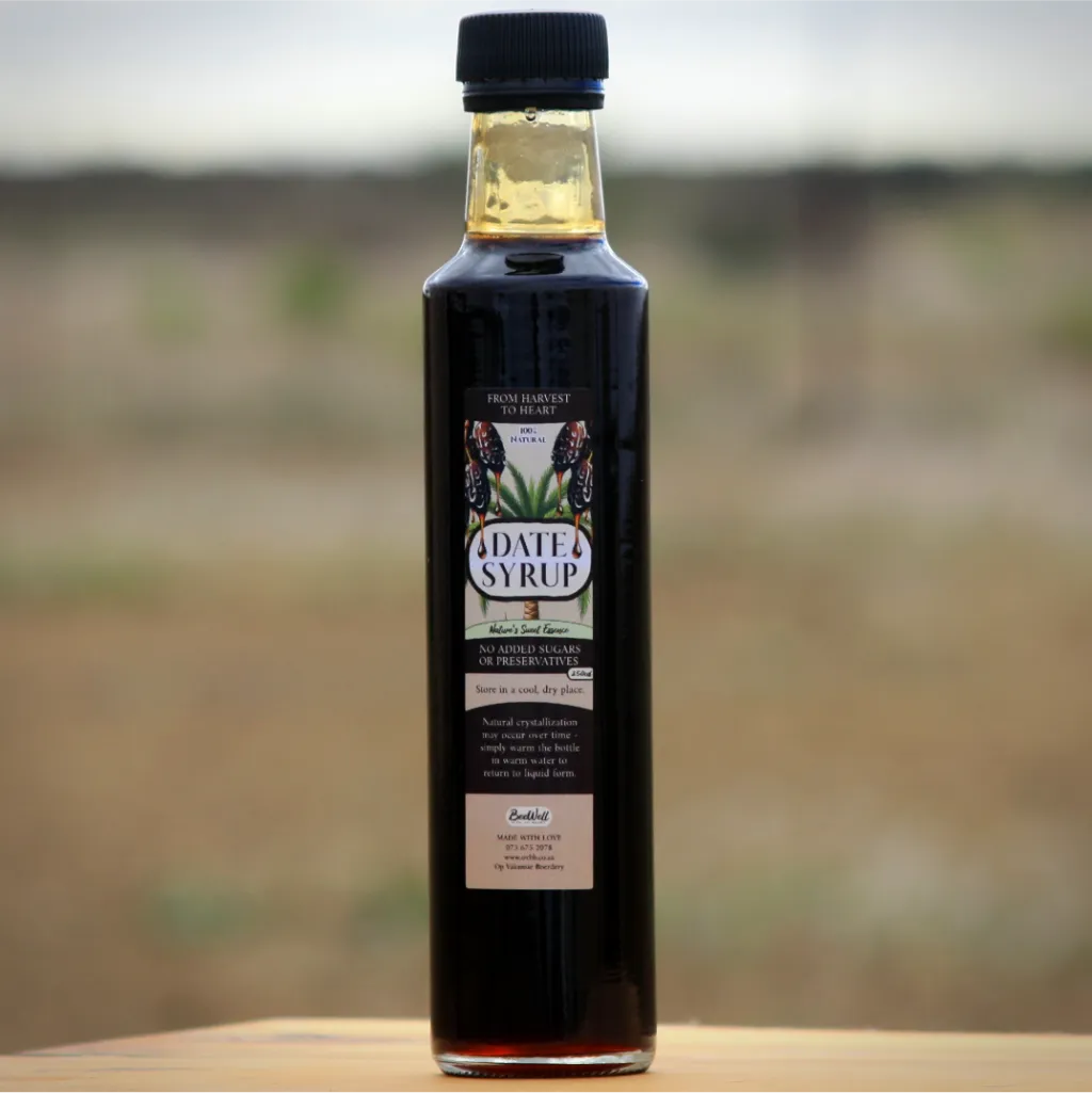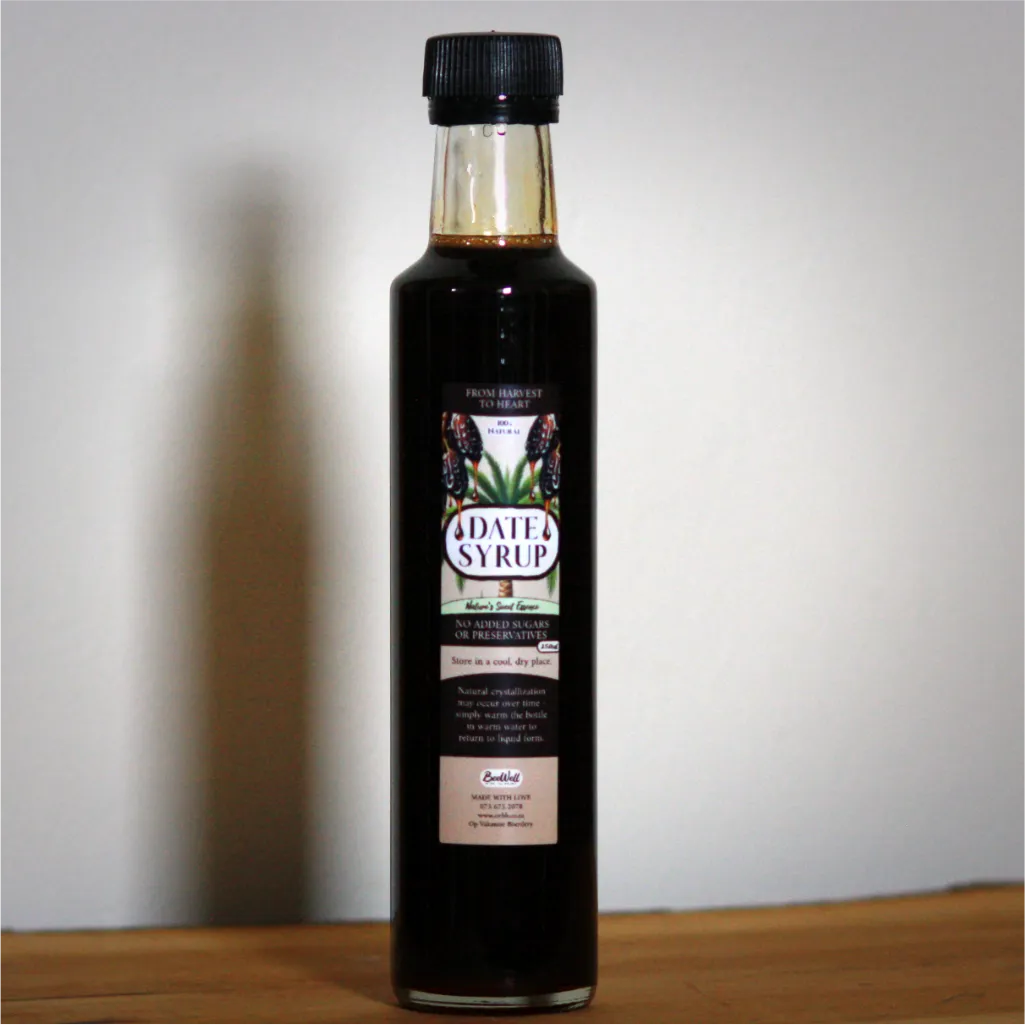 Ons BeeWell Dadelstroop is ’n suiwer, ongeraffineerde versoeter wat net van dadels gemaak word. Dit bevat geen bygevoegde suiker, preserveermiddels of kunsmatige bestanddele nie. Dadelstroop is natuurlik ryk aan vesel, yster, magnesium, kalium en antioksidante, en het ’n laer glukemiese lading as baie ander versoeters. Dit is ideaal as gesonde alternatief vir suiker of stroop – gebruik dit in koffie, tee, smoothies, bakresepte of oor ontbytgraan en pannekoeke.
