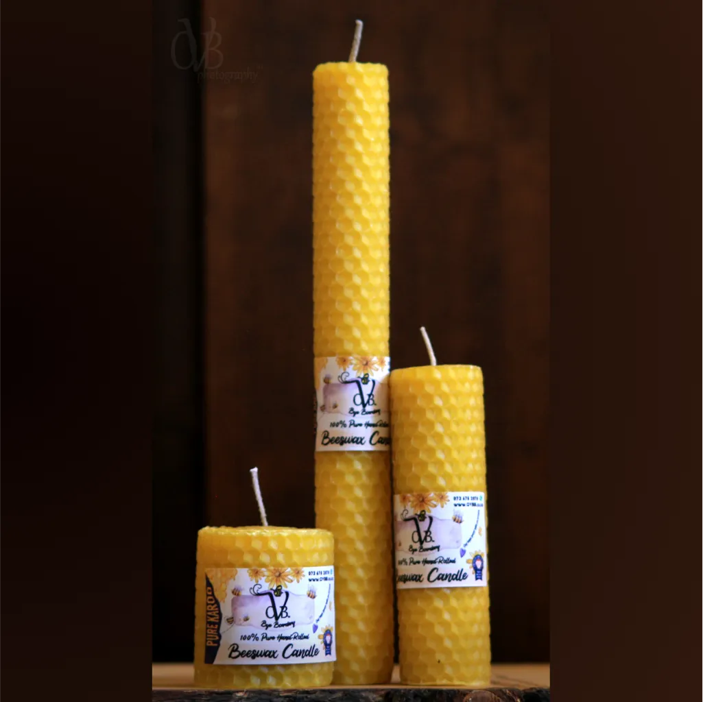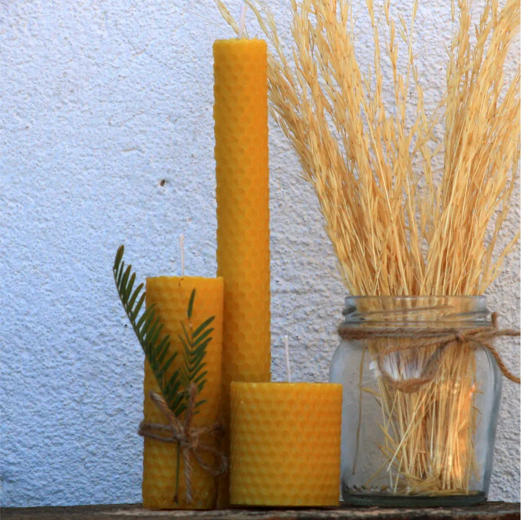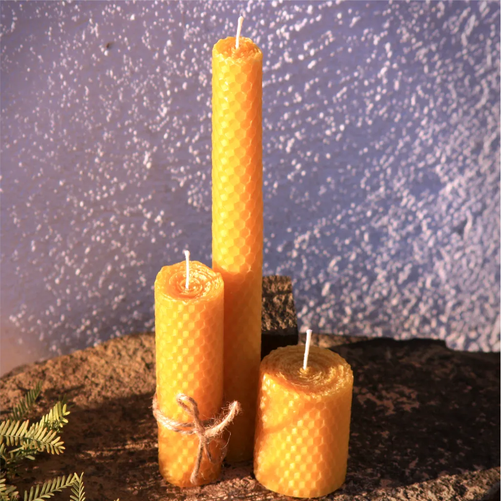 Egte, handgemaakte, handgerolde byewaskerse vir ’n warm, natuurlike gloed.