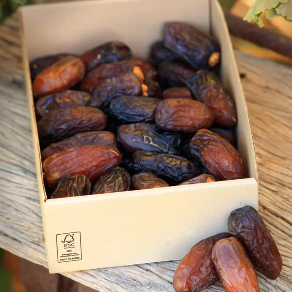 Medjool dadels is ‘n kragstasie van voedingstowwe. Hierdie fresh dates is ryk aan vesel en kalium. Of jy dit nou as gesonde peuselhappie geniet of as natuurlike versoeter, die kwaliteit van ons vars dadels is onmiskenbaar.